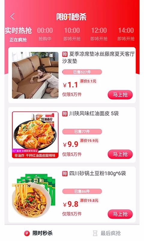 提供了限时秒杀活动,限时秒杀商品一网打尽,确保所有商品都是最低价;