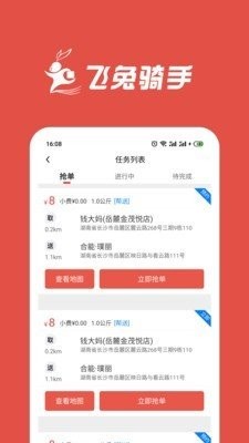 飞兔骑手app是飞免跑腿专门为跑腿员、代驾侠、万能服务专业人员专门定制使用的APP,用于跑腿员、代驾侠、万能服务专业人员接取订单使用。飞兔骑手app让各位人员可以精准接单、高效服务,轻松获取周边商家的订单,完成取、送、买、排队、代驾等一系列万能服务项目;更快速更精准服务于广大用户;飞兔骑手期待您的加入。