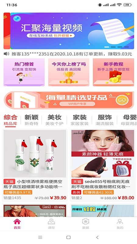 1.「高额佣金」汇集多类型商品,大多商品的佣金在50%以上,高佣金高收入;