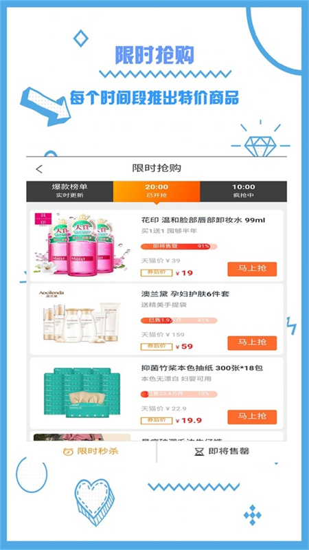 1、每个时间段为您退出特价商品,让给您购物嗨起来;