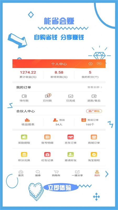 酷返app是一款非常省钱的购物商城,为什么?因为在酷返里就是为了省钱而来,省省省。省到最开心,你欢喜,我也欢喜,各种优惠,你开心我也开心。注册就送500集分宝,专享1元购物特权,酷返是淘宝、京东、唯品会等商场一键省合作商城,邀请好友参与躺着就可以赚钱,省钱赚钱两不误哟。同时,商城每天上线精美商品,廉价又实用。专注于为您寻找实惠的商品,让你可以在海量的商品中挑选出平价优质的商品,减少您在购物时的挑选时间,让您购物更加的省时;海量的优惠券和商品,任你挑选任你选择,购物更加省钱;赶快来下载吧!优质的商品等着你哦!