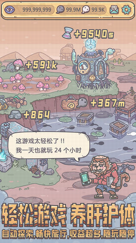 3、放置挂机,利用各中道具来加快游戏的节凑,无论是加速探索,还是获取资源情报。