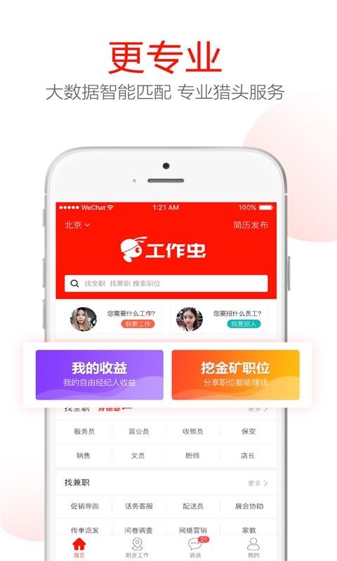 工作虫是一家专注服务行业招聘的移动互联网平台,致力于成为中国服务行业综合人力资源服务领导者。提供包括兼职,全职,自由职业的招聘及培训服务。专门为餐饮,零售,美容美发,快速消费品等行业提供快捷招聘服务、找工作就上工作虫,好活就是快。致力于成为中国服务行业综合人力资源服务领导者。提供包括兼职、全职、自由职业的招聘及培训服务。专门为餐饮、零售、美容美发、快速消费品等行业提供快捷招聘服务。随时可以在此寻找工作岗位,任何时候都能为你提供海量的招聘岗位;定位你的位置可以查询附近的招聘信息,遇到合适的岗位可以一键申请。