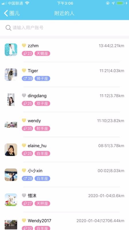 可以直接查看拿到附近的人年龄、星座,无需点进去细看;