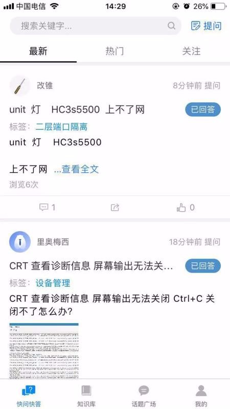 知了社区官方APP。有上百名工程师在线解答网络硬件使用中的问题。内部包含快问快答,知识库,话题广场三大模块。在云计算、大数据、移动IT、物联网及安全快速发展的新时代,服务的模式、内容和方法亟待创新。新华三服务继续以引领未来的创新力量,专业温暖服务于每一位客户。专门为用户提供一个更权威、更专业的网络知识交流服务平台,知了社区app拥有各种与网络硬件相关的资料,并且有大量工程师在线为你解决难题,需要的朋友快来下载试试吧。