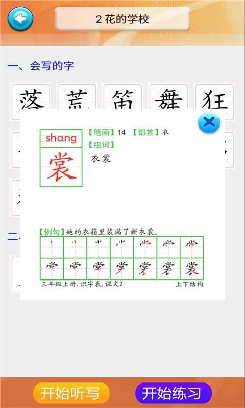 课文同步听写,参加汉字听写练习的时候出现的题目都是课文背后的习题;