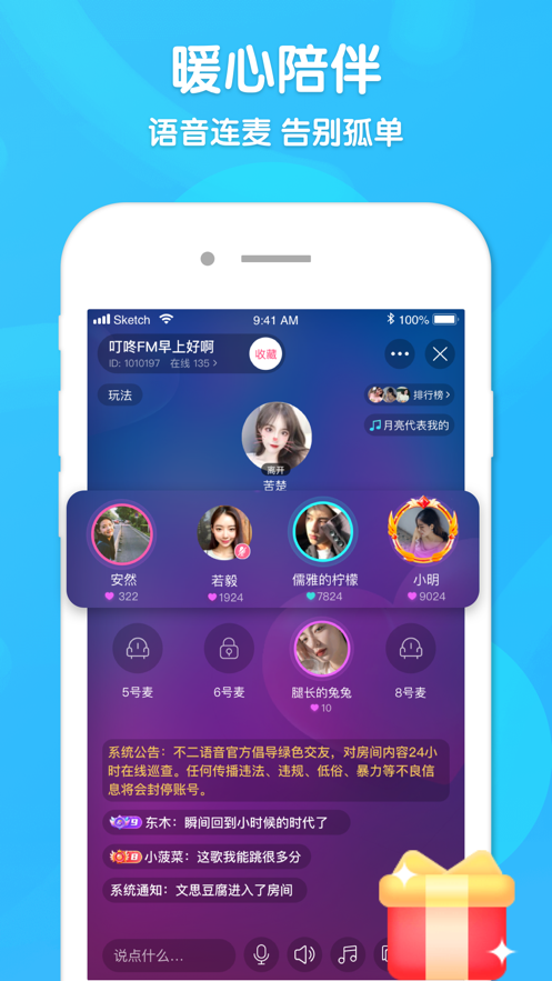 1.可以创建自己的语音房间邀请别人加入,大家可以在房间里连麦聊天;