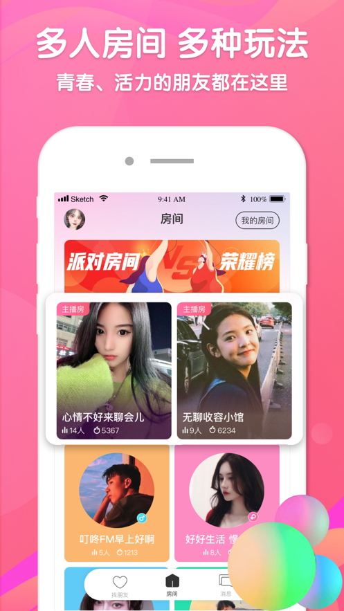 1、专为年轻人打造的个性化交友娱乐APP, 轻松找到开心玩伴;