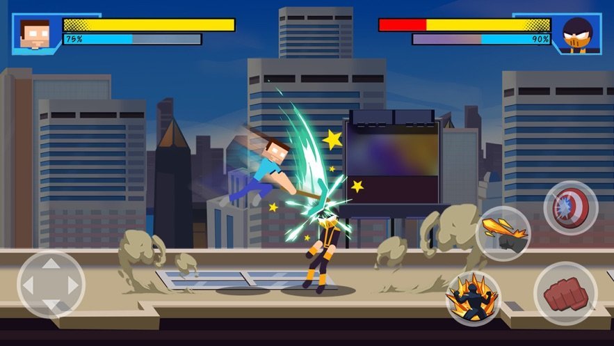 1.经典的火柴人角色与漫威英雄之间的作战玩家可以自行创建;