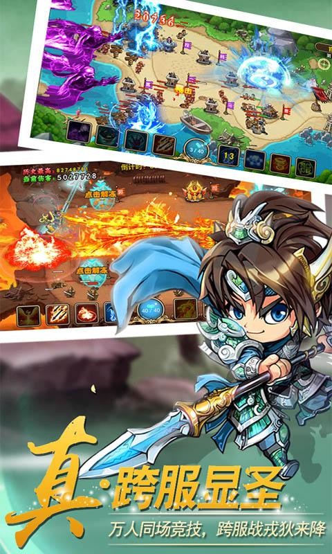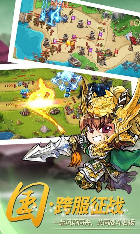 Q版的人物造型,萌态十足,更有红唇皓齿、一笑倾国的美人,为英雄增加属性,助竞技场耀武扬威!200多名传奇历史武将让你尽收帐下!