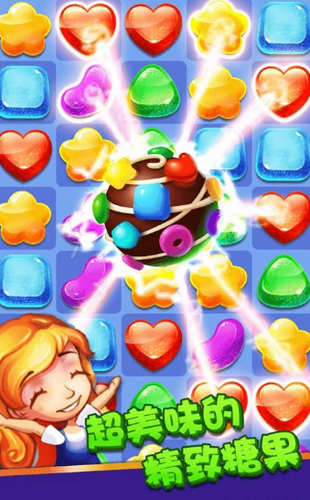 卡通风格的画面使得这款游戏非常吸引人,游戏内需要消除的是超美味的糖果,连续点击糖果进行消除会呈现出超强力的特效消除,还可以借助道具来挑战难度大的关卡,而且获得的奖励也会比以往的奖励更大。