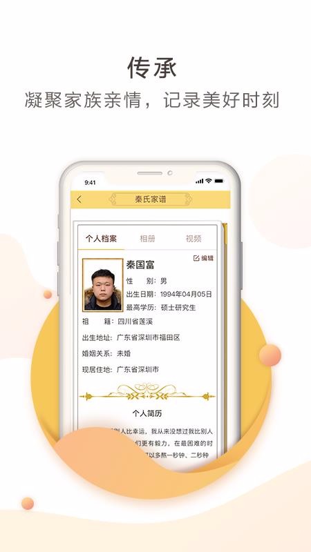 【传承】创建家谱,将个人档案、个人相册、个人影集、家庭相册,保存云端万年,供子孙查阅。