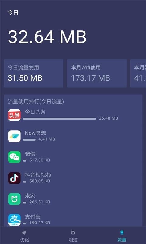 这款应用可以为用户检测手机流量和WiFi的使用数据,便于用户管控自我上网。
