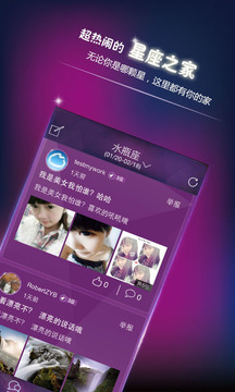 水瓶座之家,双鱼座之家,白羊座之家,金牛座之家,双子座之家,巨蟹座之家,狮子座之家,处女座之家,天秤座之家,天蝎座之家,射手座之家,摩羯座之家,每个星友都有属于一个自己的星座小屋,在这里可以吐槽秘密让星座密友们帮你解决心中的困顿。当然你如果是或有志于成为神婆或神汉还可以帮小星友们答答疑惑什么的。当然亲也可以通过QQ空间,微博,微信,朋友圈分享给你的朋友们;