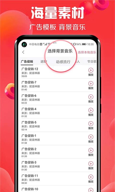 制作配音的时候可以添加背景音乐,这里有着本地与线上背景音乐可以选择;