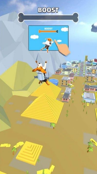 1、游戏中玩家滑动屏幕中的小狗,就可以让它进行飞越出去;