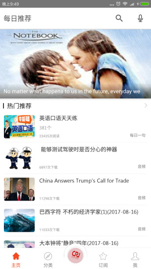 3、实时的内容更新,每天会推荐各类听力(voa、bbc news、ted talk、cnn news、 ap 、 fox)、电台、图书和双语资讯,学习英语更有轻松