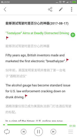 1、简洁实用的英语听力播放器,哪里听不懂点哪里,轻松听懂英语