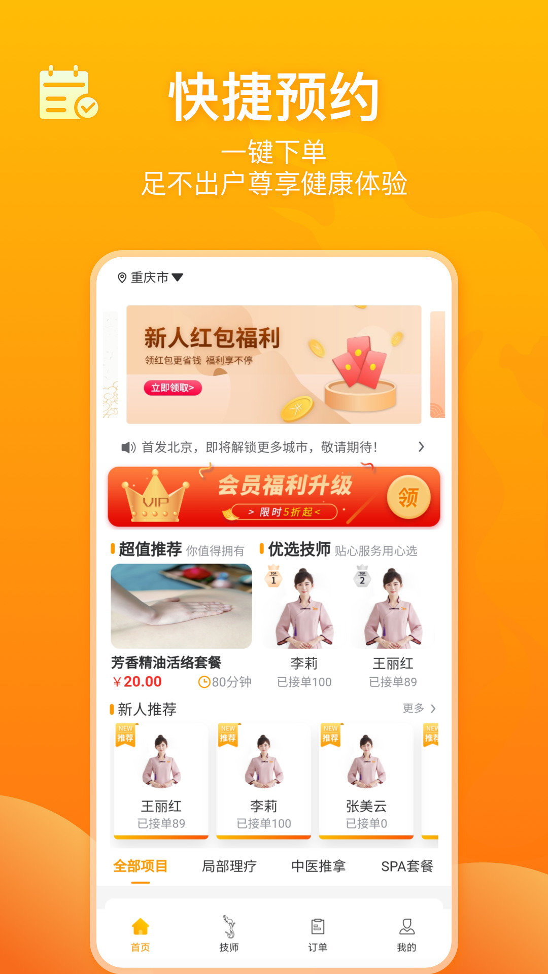 1、【快捷预约】一键下单,足不出户尊享健康体验