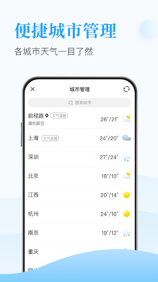 4、各个城市可以一键进行切换管理,便于知晓各个城市的天气。