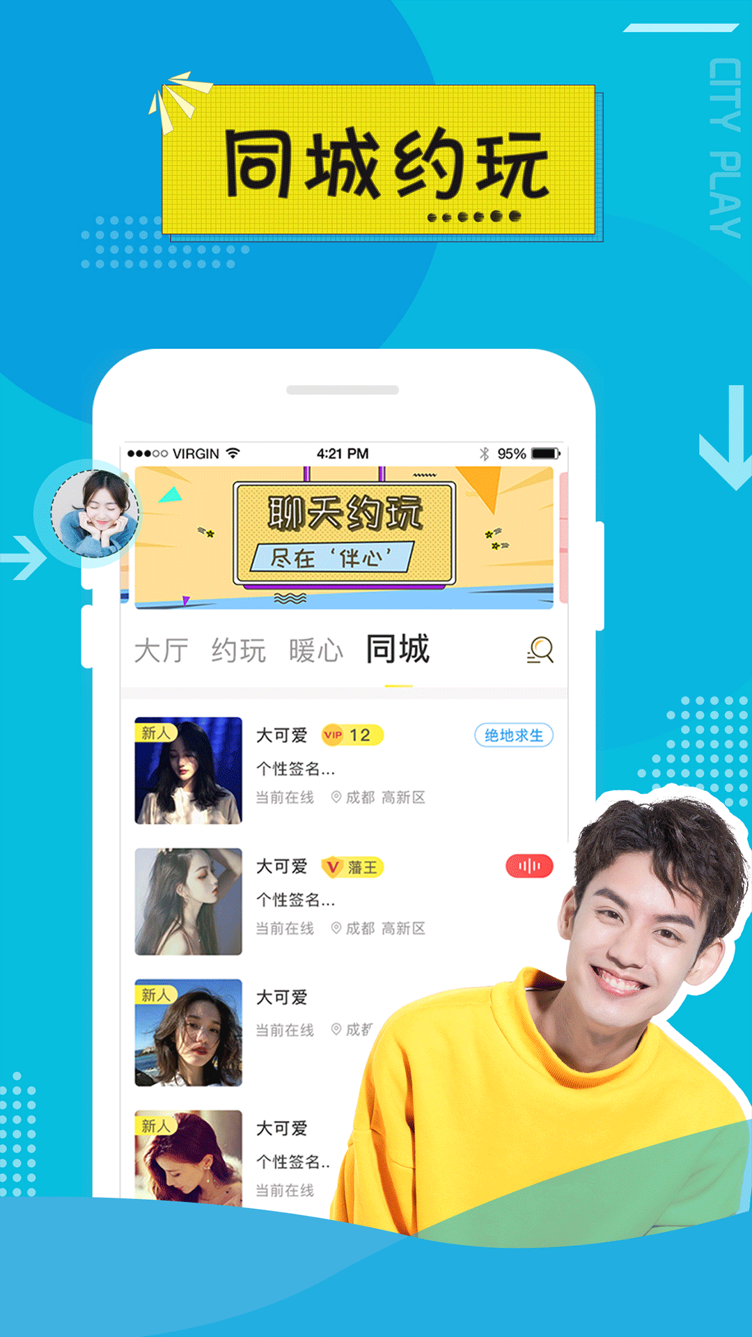 伴心语音交友是一款便捷在线约会交友软件线上所有的用户都是使用语音聊天的方式进行社交的,使用非常的方便,用户随时都可以根据自己的需求在线选择合适的对象,丰富自己的社交生活,让用户的生活更加的方便,随时都可以轻松使用想要的社交服务。这里汇聚了众多俊男美女,根据用户的地理位置进行匹配,发现你身边的有缘人,还有各种有趣的活动等你来参加!喜欢的小伙伴们快来下载吧。