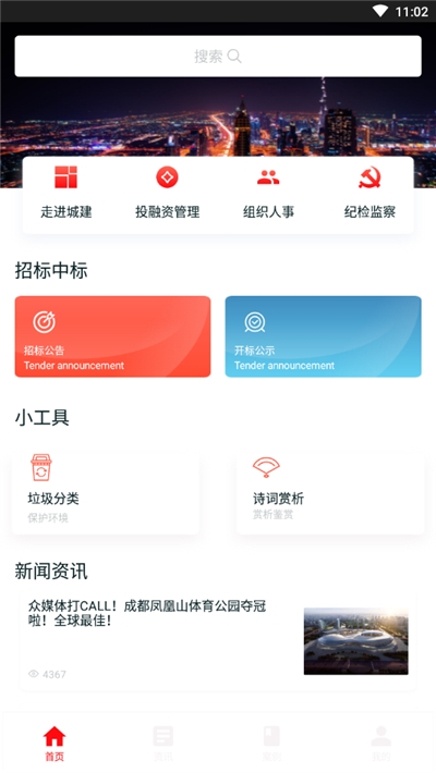城建投资管理服务软件是由苏州市市容绿色资源网市政管理局推出的公众城管信息采集以及便民服务系统。软件里设有集团新闻、集团荣誉和大事记以及其他公告让你了解,除了这些,还能让你管多个城建项目,并且可以搜索城建案例进行了解,拥有的功能也非常多,充分依靠公众力量,参与数字化城市管理和文明城市创建,以提升城市管理水平和城市对外形象。该平台通过问题报送,便民地图,广而告之,排行榜等一系列服务实现一体化信息共享。快来下载体验吧。