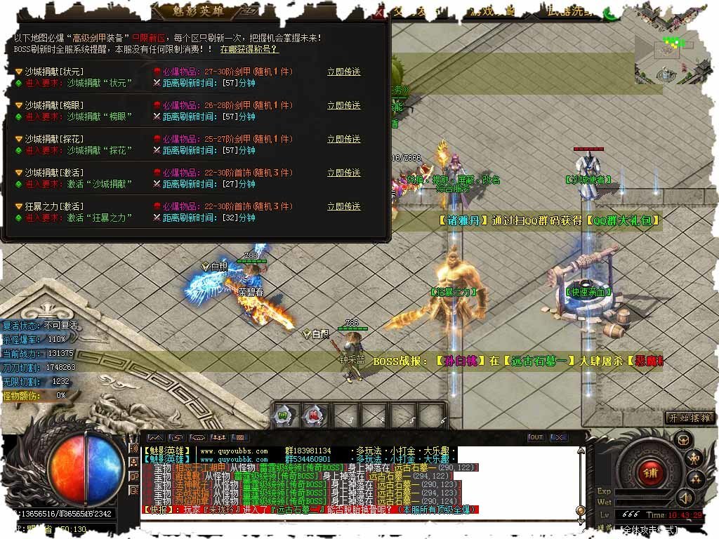 4、玩家可以凭借超高倍率的装备和千万玩家一起同场战斗,体验刺激的传奇战斗。