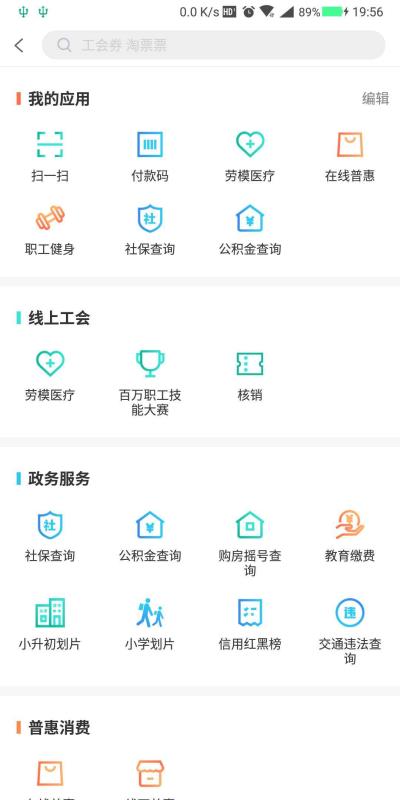 职工工会,在线可以向工会申请劳模医疗、参加工会技能大赛等;