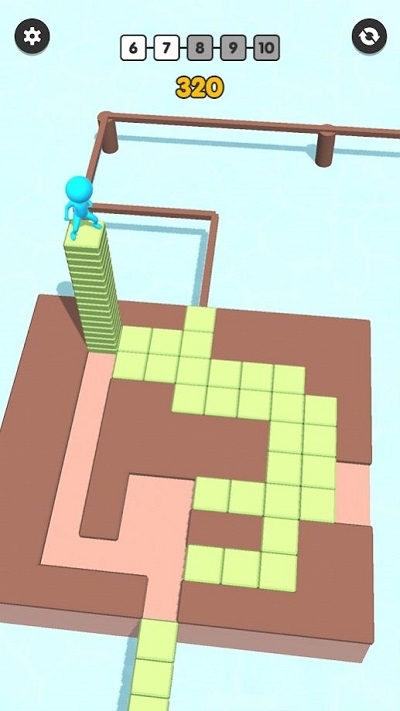 1、迷宫图形中滑动角色收集所有的砖块,不断增加高度解锁全新难关;