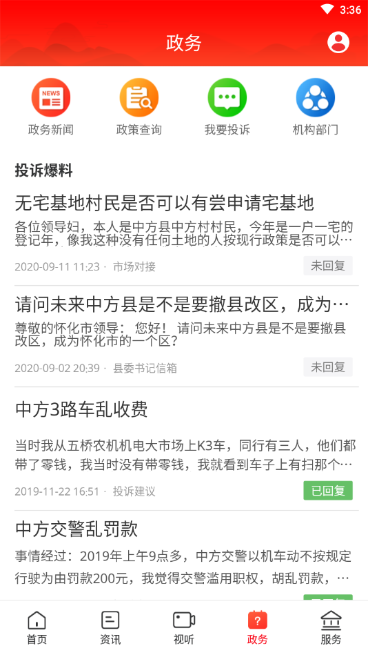 3、有任何想要提给县政府的建议,都能直接在政府板块说出自己的想法,会有专员来回复大家;