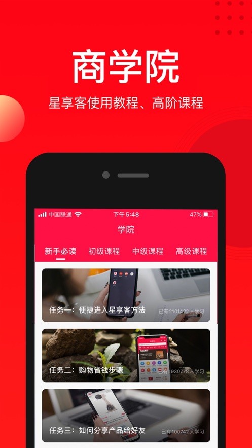 星享客是一款大家可以来购买很多的你想要的商品的软件,为每一位消费者带来更便利购物,所有商品都是正品货源,精准的搜索筛选功能,用很优惠的价格买到手吧,随时随地掌握订单状态,这也会让你感到很满足的。让大家的购物生活有新的体验和感受,海量的商品、加上分类也很齐全,全部都是正品有保障的哦。