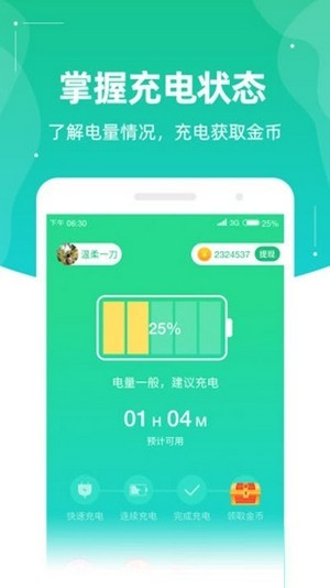 全民充电赚是一款非常火爆的赚钱软件,这可以帮助用户一边充电一边赚钱,帮助用户掌握手机的充电状态,让手机一直保持良好的状态,还有金币奖励,这些金币可以兑换成红包,一元即可提现,全民充电赚主打的是手机充电赚钱模式,用户可以用个人微信同步登陆,每天坚持手机充电,并完成规定的任务,遵守相关任务规则,就可以获得金币奖励,全民充电赚钱版支持一键快速兑换现金,秒到个人账户,感兴趣的话快来下载全民充电赚app吧。
