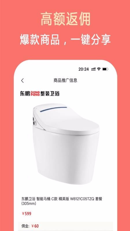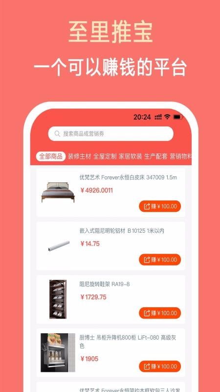 至里推宝app为用户打造的一个分享赚钱平台,平台拥有非常丰富的商品信息,您可以在这里将商品分享给对应的人群,只要对方在线完成购物操作以后,您就可以获得对应的佣金返利了,让您动动手指通过手机轻松赚钱;使用这款app以后用户就可以开启随时随地的赚钱模式了,通过app可以将各种商品的信息分享给自己的微信好友或者朋友圈,就可以大大的提升商品的购买几率,让您得到对应的奖励;app拥有非常简便的分享模式,您只需要几个简单的操作就可以在平台快速进行分享了,感兴趣的用户快来下载至里推宝安卓版使用吧!
