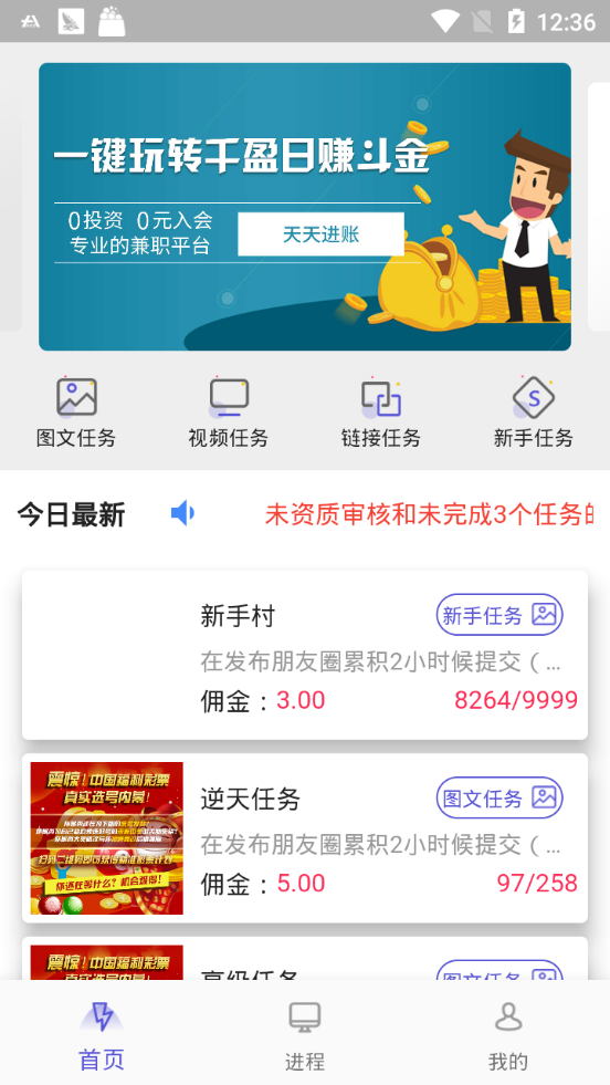 3.登录千盈之后就能看到赚钱的任务,全部是用手机完成的,可以实现在家兼职赚钱。