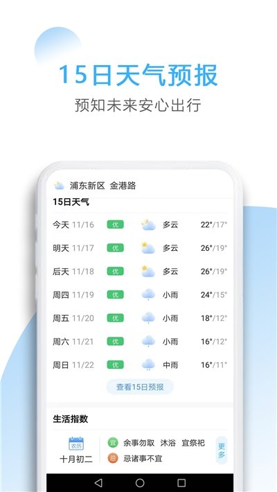 2、超长15天天气预测,预知晴雨为您的日常生活早做打算。