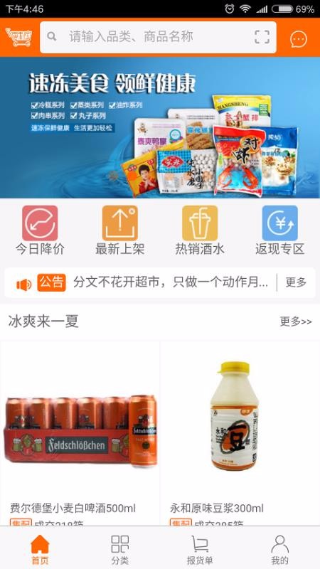 集配订单app是一款商品采购工具,提供丰富的酒水产品、速冻美食等,轻松解决采购需求;包含商品购买、搜索查找产品、查询订单服务状态等功能,致力于打造高品质的采购平台;想要购买的产品都可以直接加入报货单,手动设置订购产品的数量,通过简单操作就能够在线下单,并配合安全支付功能使用,在平台内就能够支付商品采购资金,快速获取需求产品;并且部分商品还有优惠活动,享受折扣价购买,如商品优惠券、满减活动等,每天都会不同的优惠活动可以参加,每一次使用app进货都能得到优惠,为您减低采购成本,赚取丰厚收益。