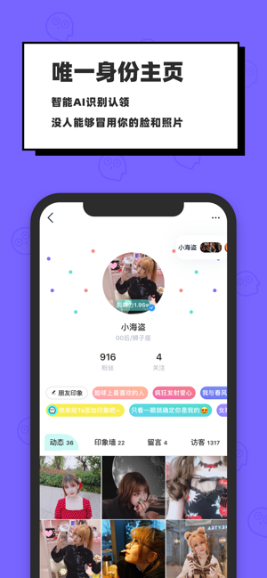 脸球app是一款非常棒的社交平台,为更多用户提供更好的真实的社交体验,通过扫脸认证的用户就拥有了唯一的id,自己的界面就像是自己的朋友圈,有智能的人脸识别系统,专注于扫脸社交的人气软件,认证方式更加的智能,而且没有人能冒用你的身份,是年轻人找同兴趣的圈子,找校友,同城互动的约会交友中心。可以发一些自己的状态心情照片视频,方便同样拥有真实认证的人看到你的动态,关注或者留言,这样您们就有缘分认识啦。