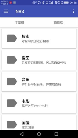 NRS搜索工具app是一款不错的动漫资源搜索功能,为用户提供了搜番、搜图、音乐解析、vip电影解析等丰富的功能。NRS搜索工具是各位动漫爱好者搜资源下资源的神器,需要的朋友赶紧下载吧。