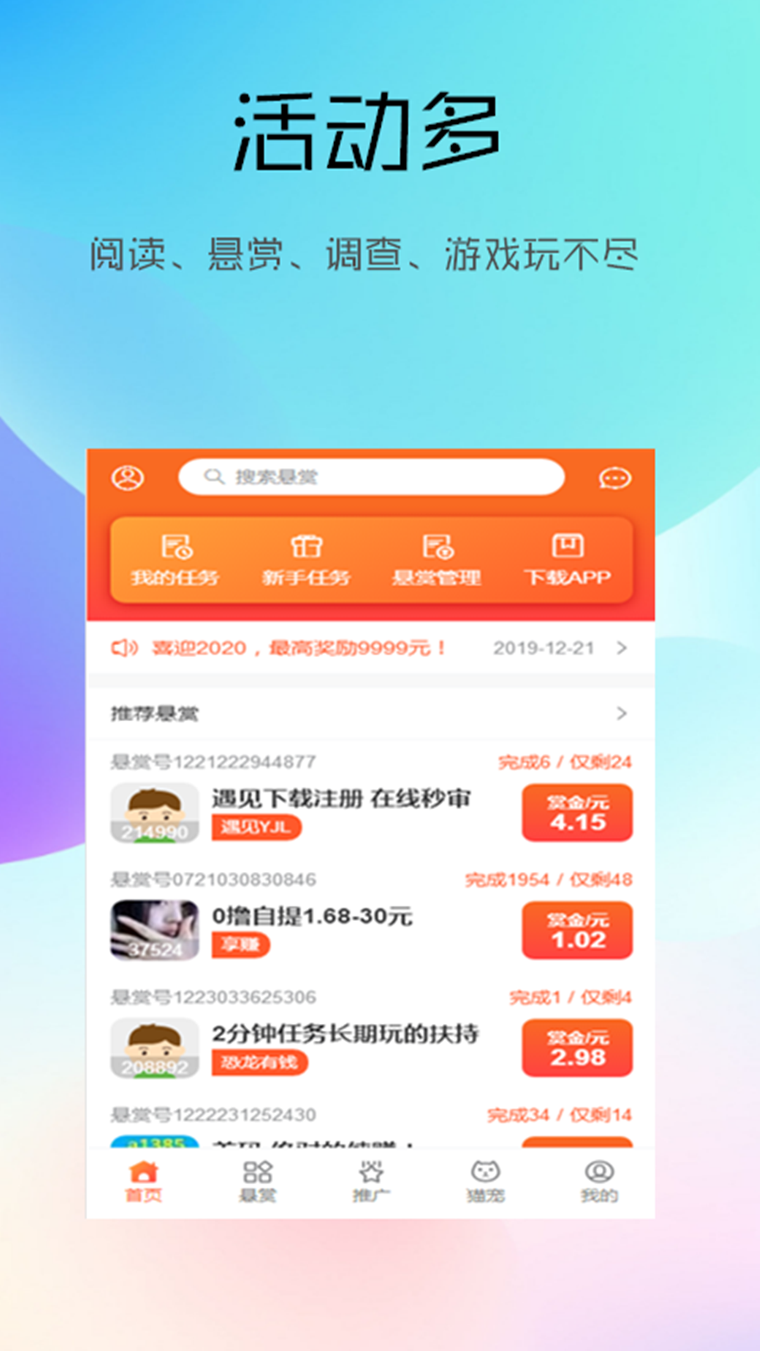 2、让你在一边做任务的同时可以收获更多的快乐,在这个平台上的任务奖励也很充足;