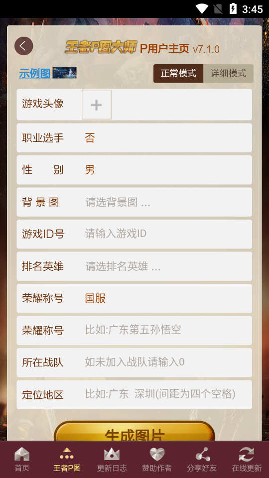 王者P图大师破解版是一款专为王者手游爱好者打造的战绩图片编辑软件,可以直接P出各种不同等级的偷袭战绩图片,超多素材免费使用,不仅十分真实,同时不同段位都可以满足,而且不同英雄都可以来选择,用户可以根据自己的游戏主页、游戏战绩、排位、天梯、头像等图片编辑,操作简单,无痕P图,还可以在这款游戏中制作自己想要的图片的效果呢,快捷、方便,快来这里定制你的专属个性战绩吧。