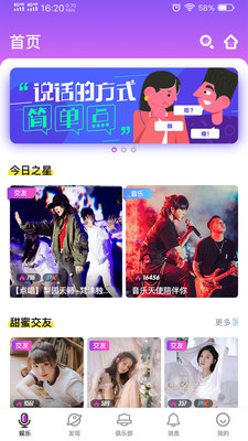 打造了一个全新的声音交友平台,摒除其他因素,在此可以单纯的拼接声音结交朋友,无论男女,随时可以在此发现心目中的声音,对待喜欢的声音即可直接私信,可以直接向对方打招呼,接着可以在线实时聊天。这款语音交友app打造了声音多种玩法,游戏开黑、情感语聊以及声音电台、声音直播、唱歌等玩法应有尽有,喜欢哪种玩法即可加入对应的房间,进入房间之后即可体验多对多的聊天方式。值得一提的是,这里的心动速配功能可以快速的帮助用户找到喜欢的声音,一键匹配有缘人,陌生人之间的友谊就能在此产生。