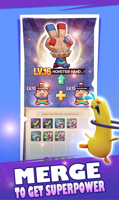 1、合并以获得高级装备,技能和宠物军队,指挥独特的宠物军团以PVP模式战斗。