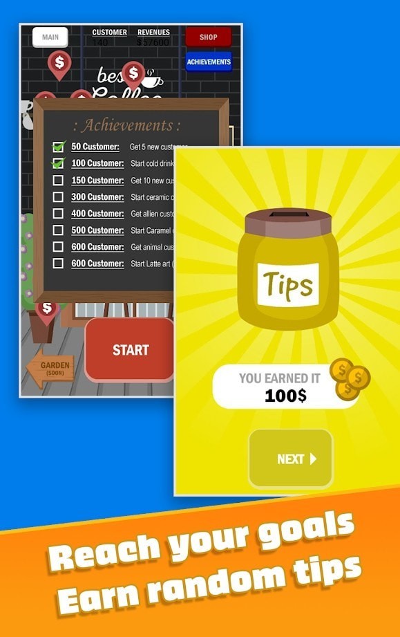 1、经营你的咖啡店,模拟咖啡的制作过程,每一个步骤十分的还原,为您的客户提供美味的咖啡。