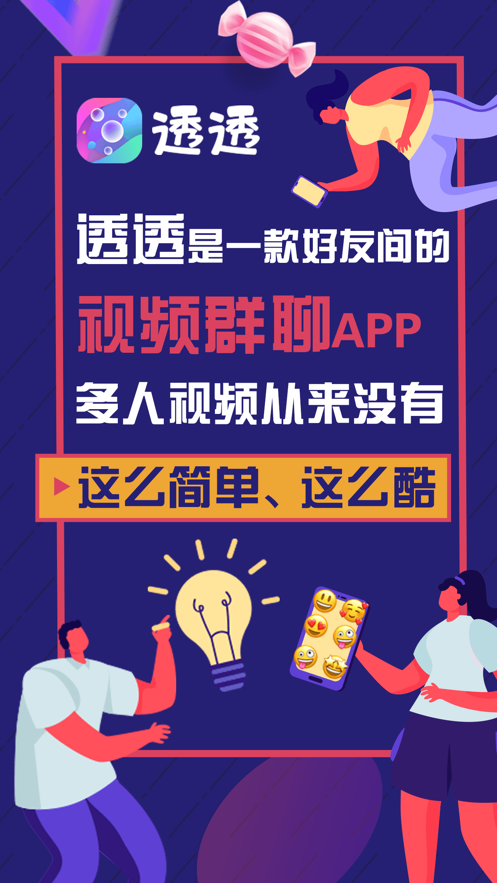 1.好友们可以随时随地通过透透发起实时视频聊天,丰富的聚会游戏,嗨翻全场;