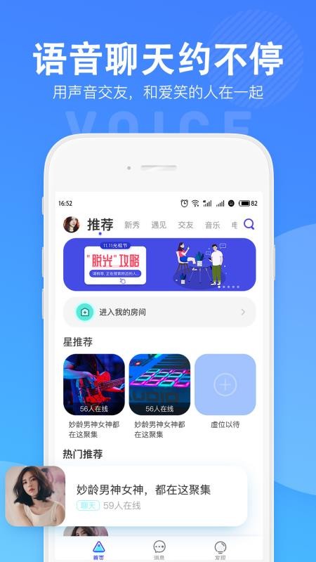 4、语音聊天约不停,用声音交友,和爱笑的人在一起