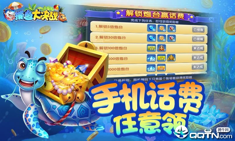 真人联机捕鱼,万人同场PK,竞技排名赢话费,钻石任性拿!