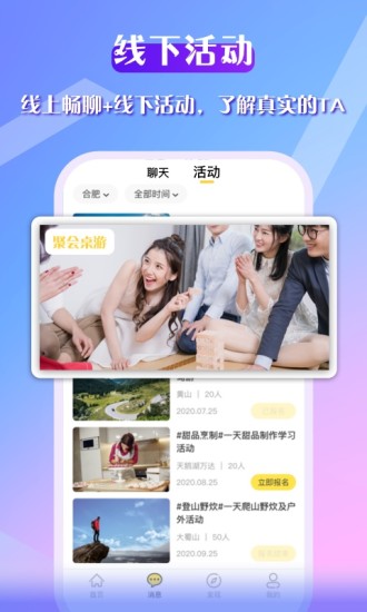 2、海量优质用户+人工智能精准推荐+线下兴趣活动,为你找到最适合的TA;
