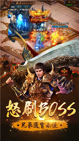 2、游戏内设独特BOSS系统,和兄弟一起打BOSS,体验超高爆率、疯狂收割的快感,让你不再为装备和资源发愁!