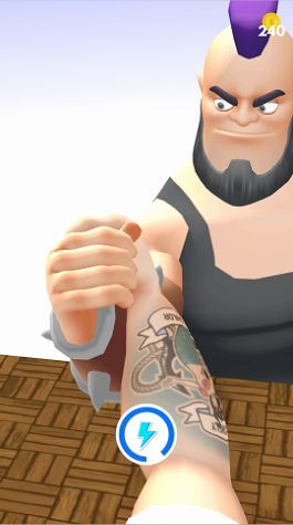掰腕子模拟这是一款玩法魔性内容十分简单的模拟掰手腕游戏,在这款游戏中玩家会成为一名掰手腕选手与各种状况进行较量,你会用你精准的操作与对方进行掰手腕,把握好时机一击致命,将对手击倒在你的手下,成为整个酒馆中最优秀的掰手腕冠军。游戏里有着十分有趣的q版卡通人物画风,每一位对手的实力都不可小视,玩家需要用自己的手指拼命的点击屏幕,发挥出强大的力量打赢一个又一个对手,你可以通过获得金币来解锁更多的皮肤,给你的手腕上装饰出各种各样的样子。