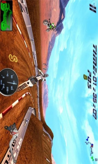 这是一款摩托特技竞速的软件。与普通的摩托系列不同的是你既需要做一些富有挑战性的特技动作又需要如同竞速软件一样在赛道上疾驰。握紧你的摩托,拧紧油门,在充满危险的赛道上飞驰,感受极限摩托的乐趣。